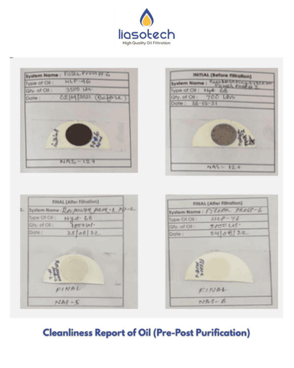 By achieving NAS 6, Liasotech reduced the particle count by over 98%, returning the oil to a cleanliness level often superior to fresh oil from a drum.